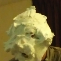 StagedStooge got a custard-filled balloon busted over his head by michiganpie1